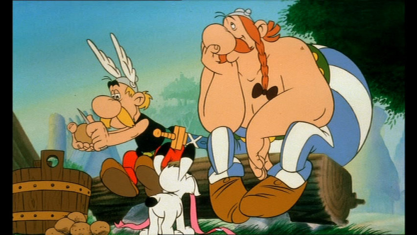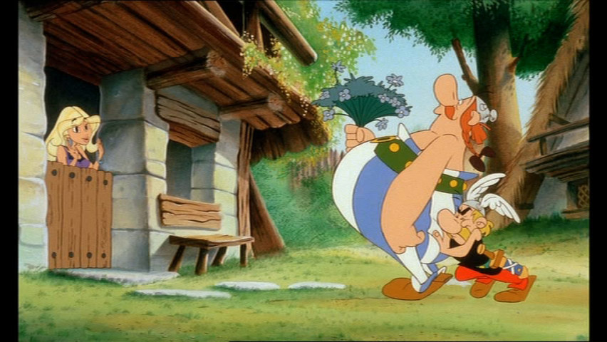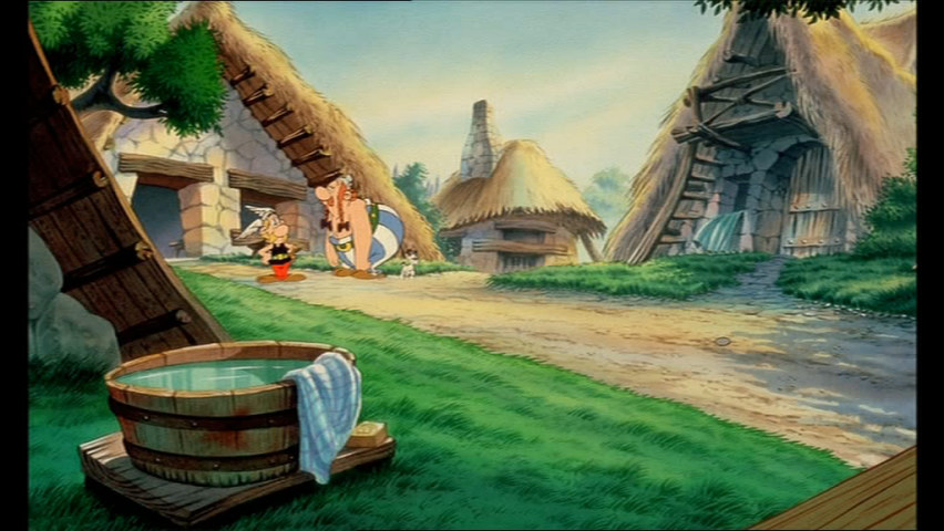 Kommentar: Der Vergleich zwischen einer deutschen TV-Ausstrahlung von 2005 und der im gleichen Jahr in Frankreich erschienenen DVD mit neuem anamorphen Transfer von Asterix - Sieg über Cäsar zeigt, daß die Franzosen ziemlich alles richtig gemacht haben. Die DVD zeigt einen viel größeren Bildausschnitt und kann auch mit besseren Farben aufwarten, die zwar etwas ins Rötliche gehen, aber dafür nicht so grell wirken. Die Filterung der DVD hat nicht zu drastischen Auswirkungen geführt, Artefakte wie im fünften Screenshot sind nur selten und meist nur für ein einziges Filmbild zu sehen. Angesichts des ansonsten hervorragenden Transfers, der die verfusselte und wackelige TV-Version haushoch übertrifft, fallen diese kleinen Einschränkungen kaum ins Gewicht. Das französische Bildmaster wird voraussichtlich auch bei der im Juli 2009 in Deutschland erscheinenden Jubiläums-DVD-Box verwendet.