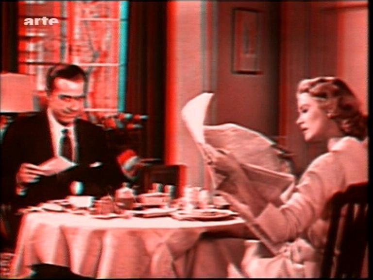 Comment: The 3D-Version of Dial M for Murder shown by ARTE in August 2010 proved to be a huge disappointment, because the quality was as bad as a VHS recording - presumably the same master was used, which was shown in the 1980s by the WDR during a 3D-series and is also in circulation on some bootleg discs. The 3D effect is sometimes visible, but often the image pairs fall out of alignment and cause headaches. The comparison with the 2008 american DVD from Warner shows that there are worlds between the two masters.