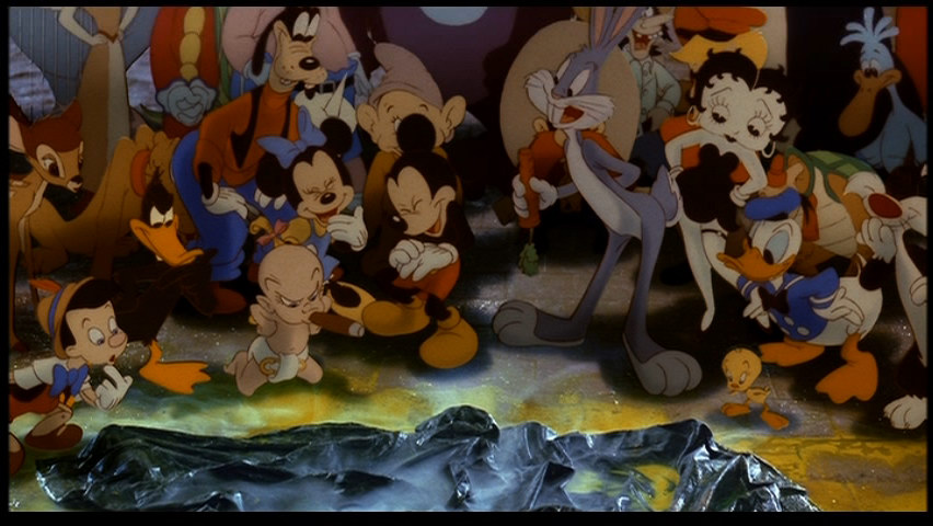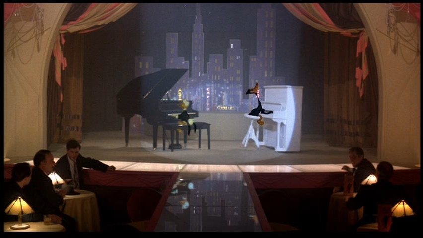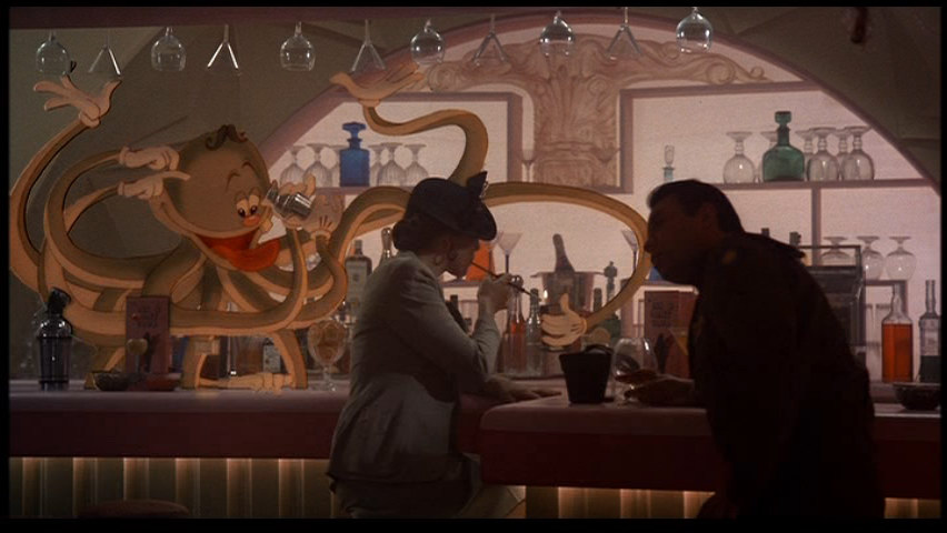 Kommentar: Was sich Disney dabei gedacht hat, die rabenschwarze und gar nicht kindertaugliche Real-Trickfilm-Kombination Who Framed Roger Rabbit auf der 2003 neu erschienenen Special-Edition mit einer zusätzlichen Fullscreen-Fassung und "family friendly"-Extras auszustatten, möchte man lieber erst gar nicht wissen. Der Vergleich der zum Glück auch vorhandenen Widescreen-Version mit der Fullscreen-Version fördert nichts überraschendes zutage: die meisten Teile des Films ohne Animation sind Open-Matte, während sämtliche Szenen mit Trickfilm-Elementen nur wenig vertikal geöffnet wurden und an den Seiten massiv Bild verlieren, wodurch ganze Charaktere verschwinden und die Bildkomposition komplett zerstört wird. Leider kann man aus der zweiten Disc keinen Untersetzer machen, da sich doch einige wichtige Extras darauf befinden - am besten man ignoriert die 4:3-Version einfach und freut sich über die ansonsten sehr gelungene DVD. |