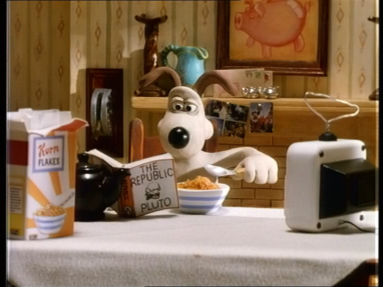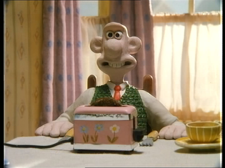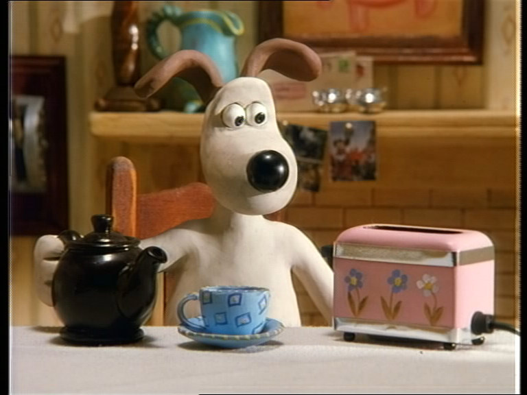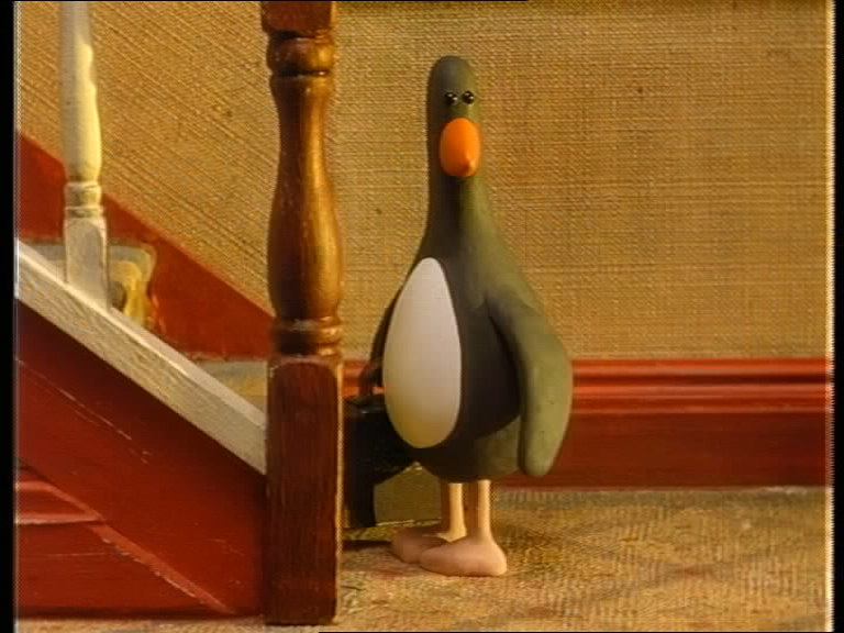 Kommentar: Die neue restaurierte HD-Abtastung von Nick Parks zweitem Stopmotion-Trickfilm ist eine große Verbesserung gegenüber dem etwas schwammig aussehenden früheren Videomaster. Auffällig ist lediglich, daß der Bildausschnitt des neuen Transfers etwas kleiner ist, allerdings sind bei der alten Version an den Seiten auch unschöne Artefakte zu sehen - das Framing scheint aber genauso wie das Farbtiming teilweise für jede Szene separat angepaßt worden zu sein. Der wirkliche Schärfegewinn ist leider auf der britischen DVD der Complete Collection nicht im vollen Umfang sichtbar, da das 1.33:1-Bild unsinnigerweise in 16:9 mit Balken an den Seiten codiert wurde und so nicht die volle Auflösung ausnutzt. |